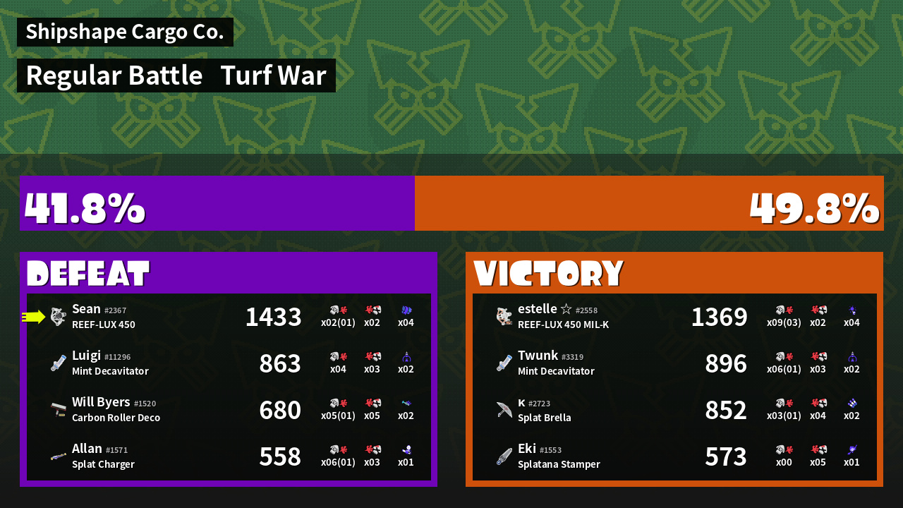 | Mode | Turf War - Regular Battle | ||