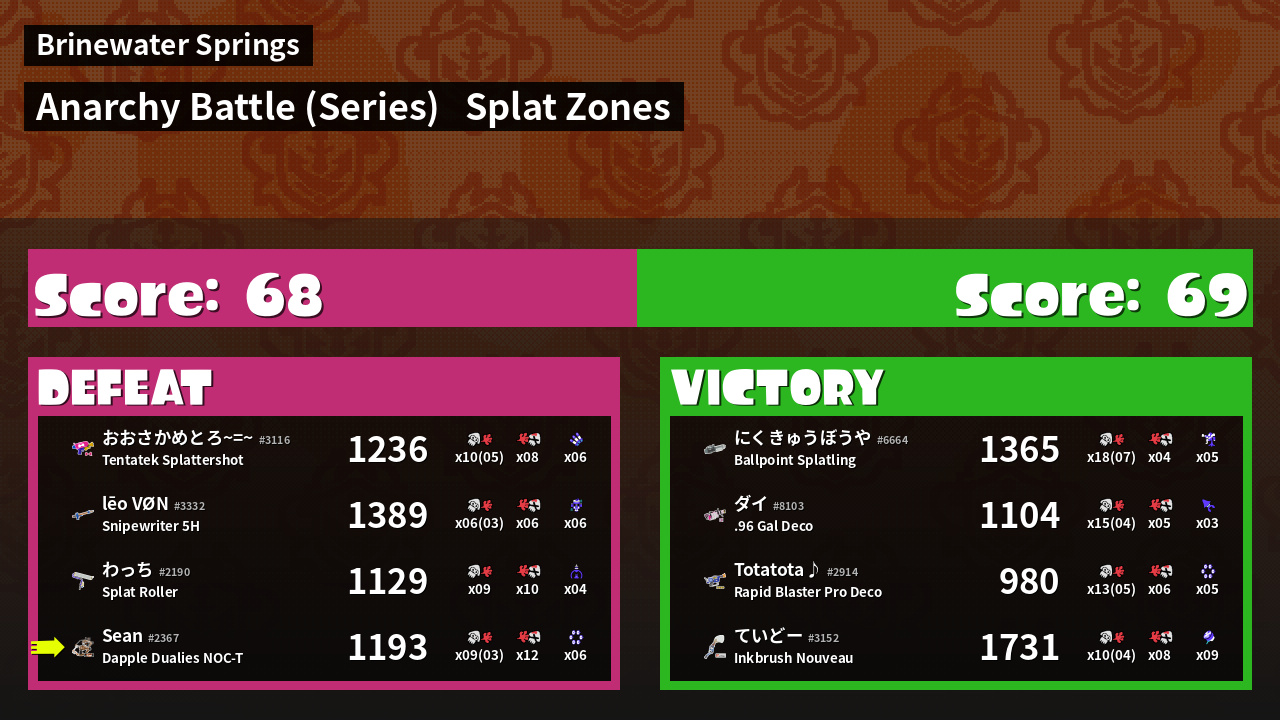 | Mode | Splat Zones - Anarchy Battle (Series) | ||