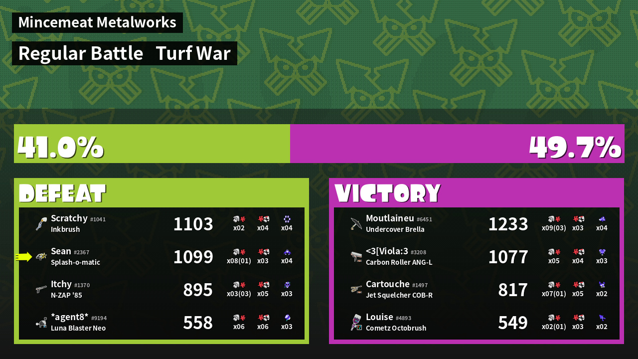 | Medals | #1 Overall Splatter #1 Popular Target #1 Enemy Splatter | ||