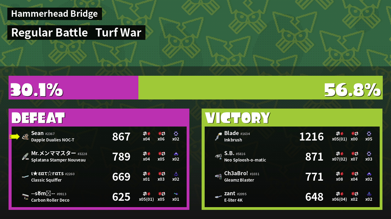 | Medals | #1 Turf Inker #1 Popular Target #1 Enemy Splatter | ||