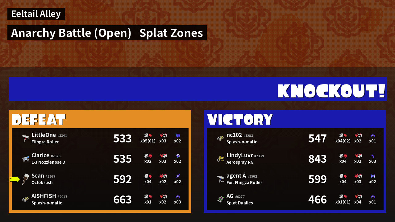 | Mode | Splat Zones - Anarchy Battle (Open) | ||