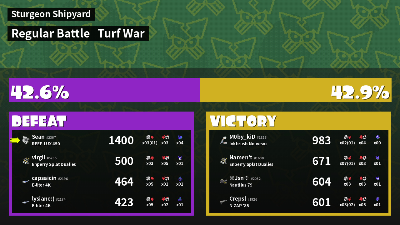 | Medals | #1 Turf Inker #1 Home-Base Inker #1 Enemy-Base Inker | ||
