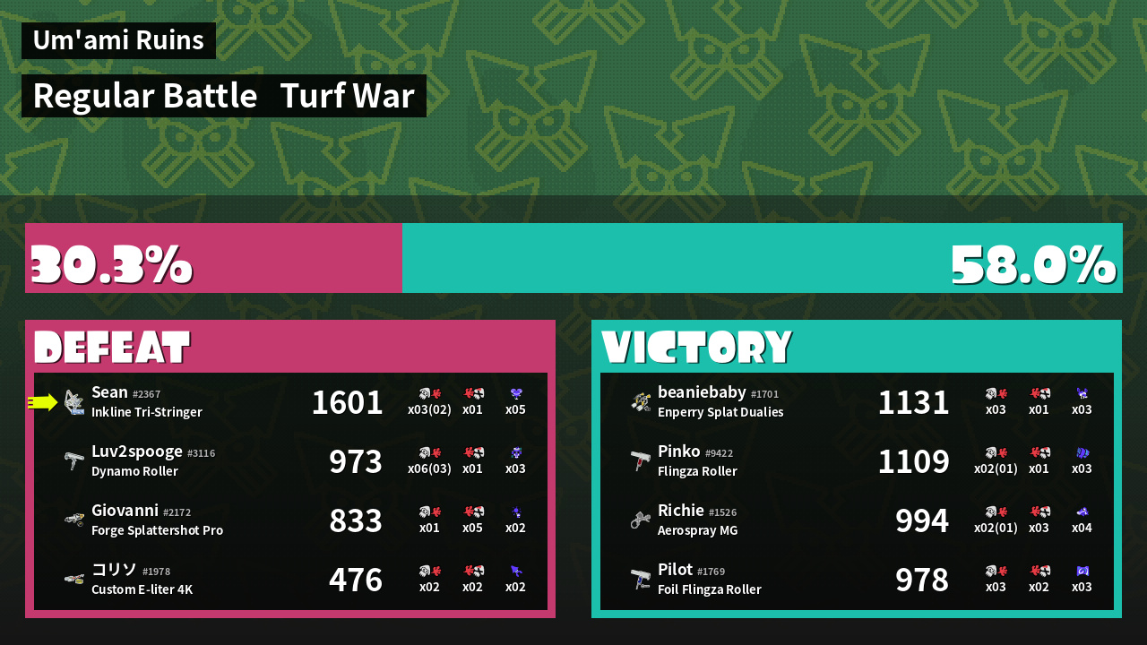 | Mode | Turf War - Regular Battle | ||