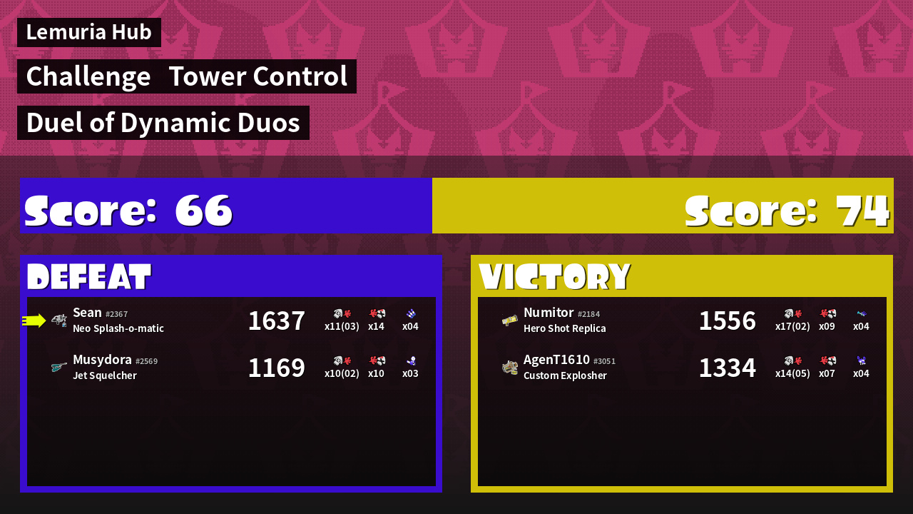 | Medals | #1 Overall Splatter #1 Turf Inker #1 Enemy Splatter | ||