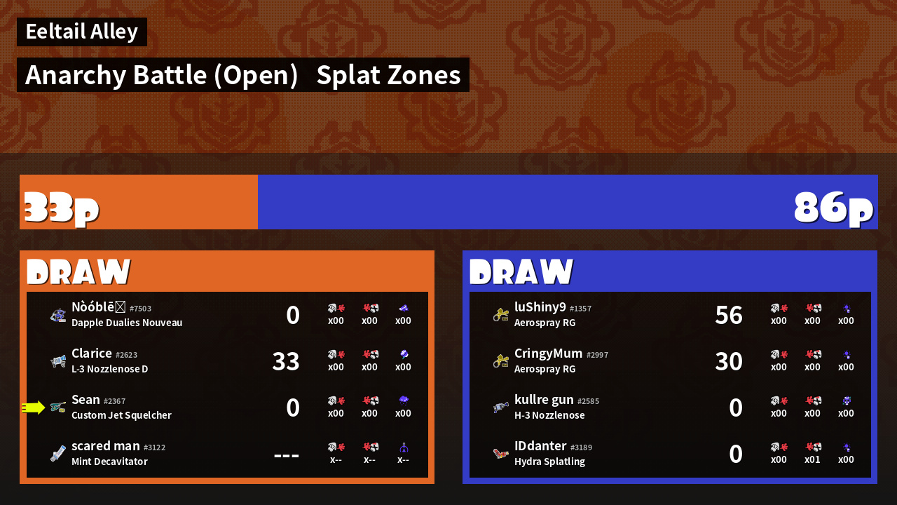 | Mode | Splat Zones - Anarchy Battle (Open) | ||