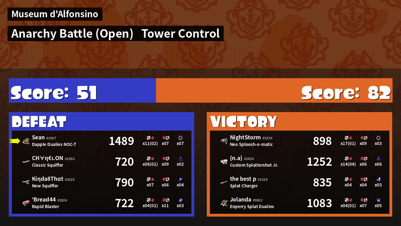 | Mode | Tower Control - Anarchy Battle (Open) | ||