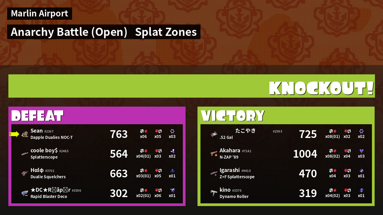 | Mode | Splat Zones - Anarchy Battle (Open) | ||