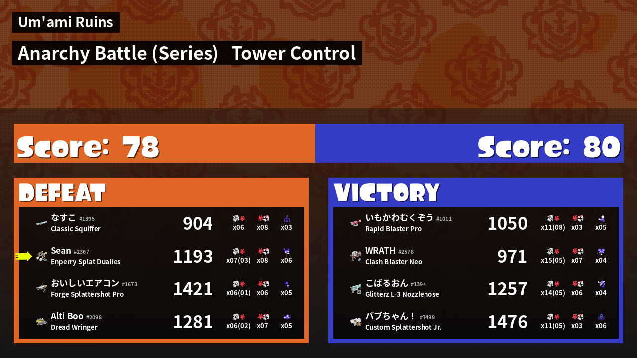 | Medals | #1 Overall Splatter #1 Splat Assister #1 Tower Stopper | ||
