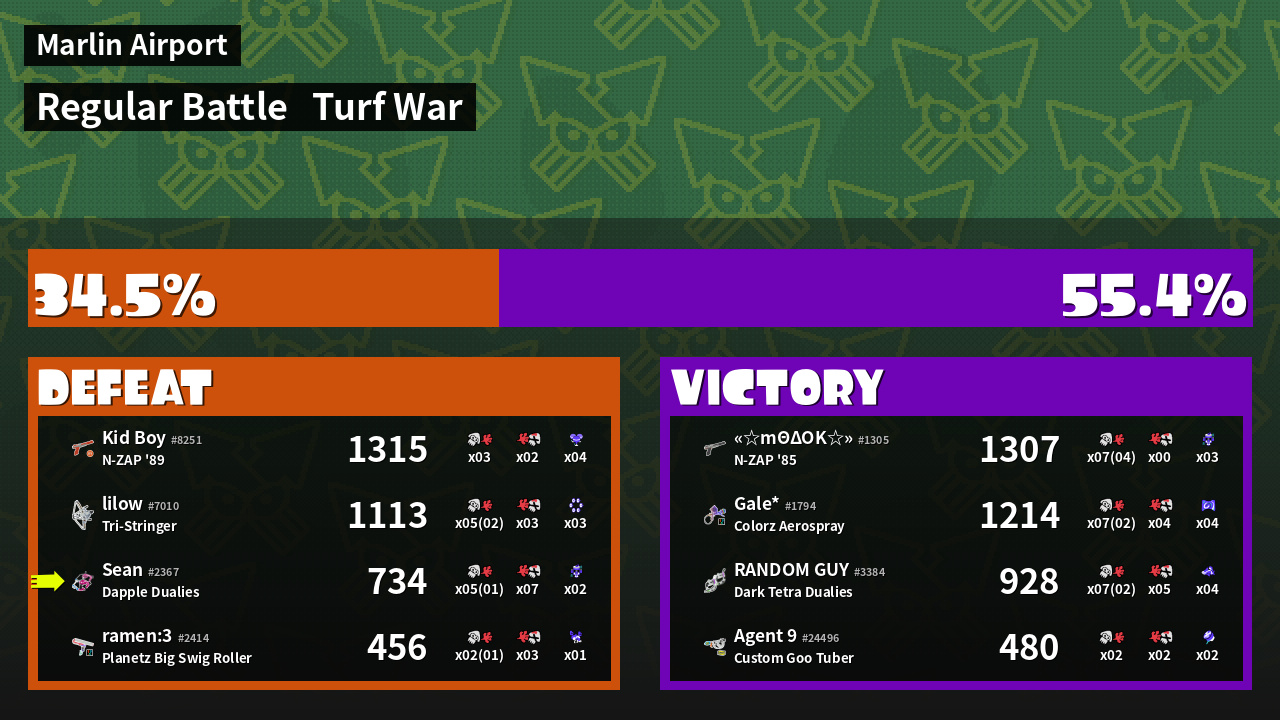 | Medals | #1 Overall Splatter #1 Enemy Splatter #1 Base Defender | ||