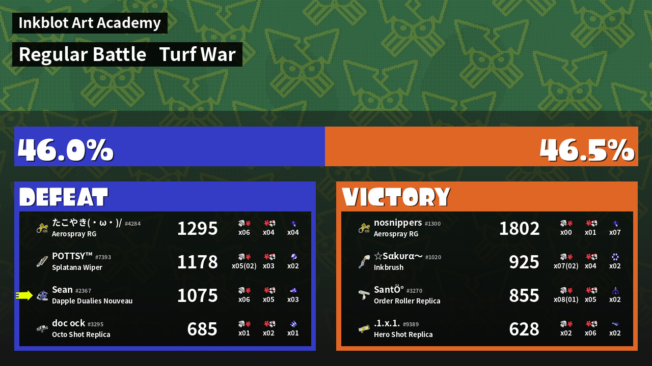 | Mode | Turf War - Regular Battle | ||