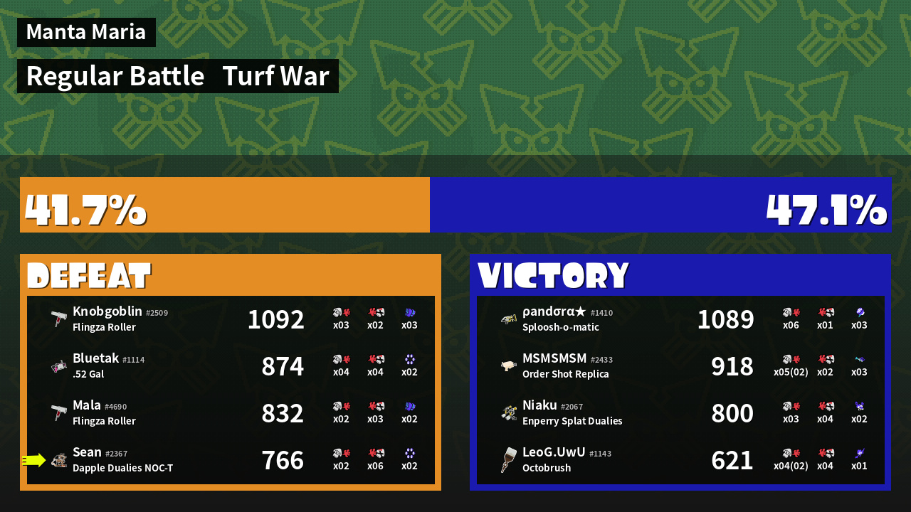 | Mode | Turf War - Regular Battle | ||