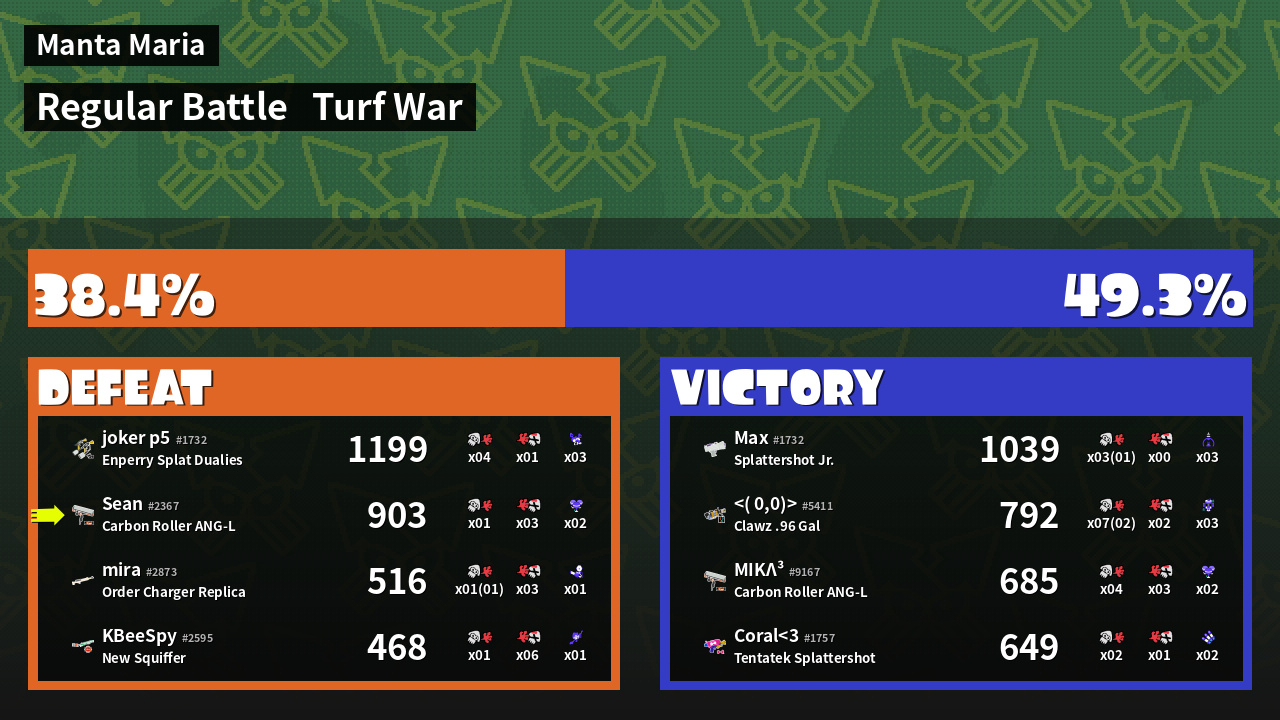 | Mode | Turf War - Regular Battle | ||
