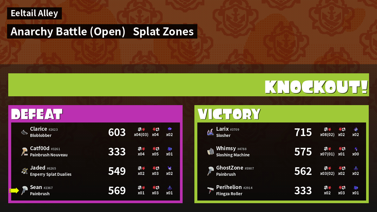| Mode | Splat Zones - Anarchy Battle (Open) | ||