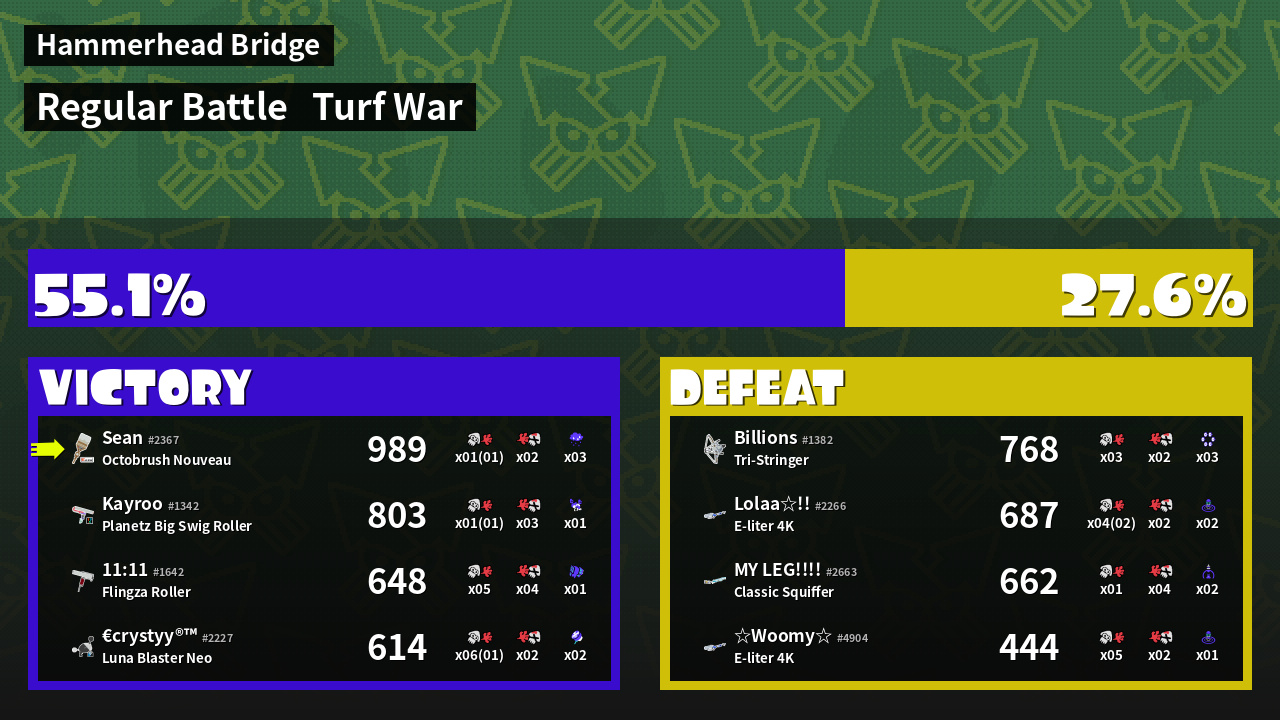 | Medals | #1 Turf Inker #1 Splat Assister #1 Ink Consumer | ||