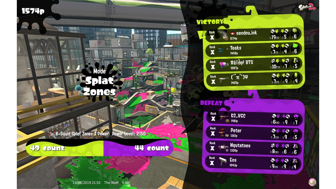 | Mode | Splat Zones - Ranked Battle | ||||||||||||||||||||||||||||||||||||||||