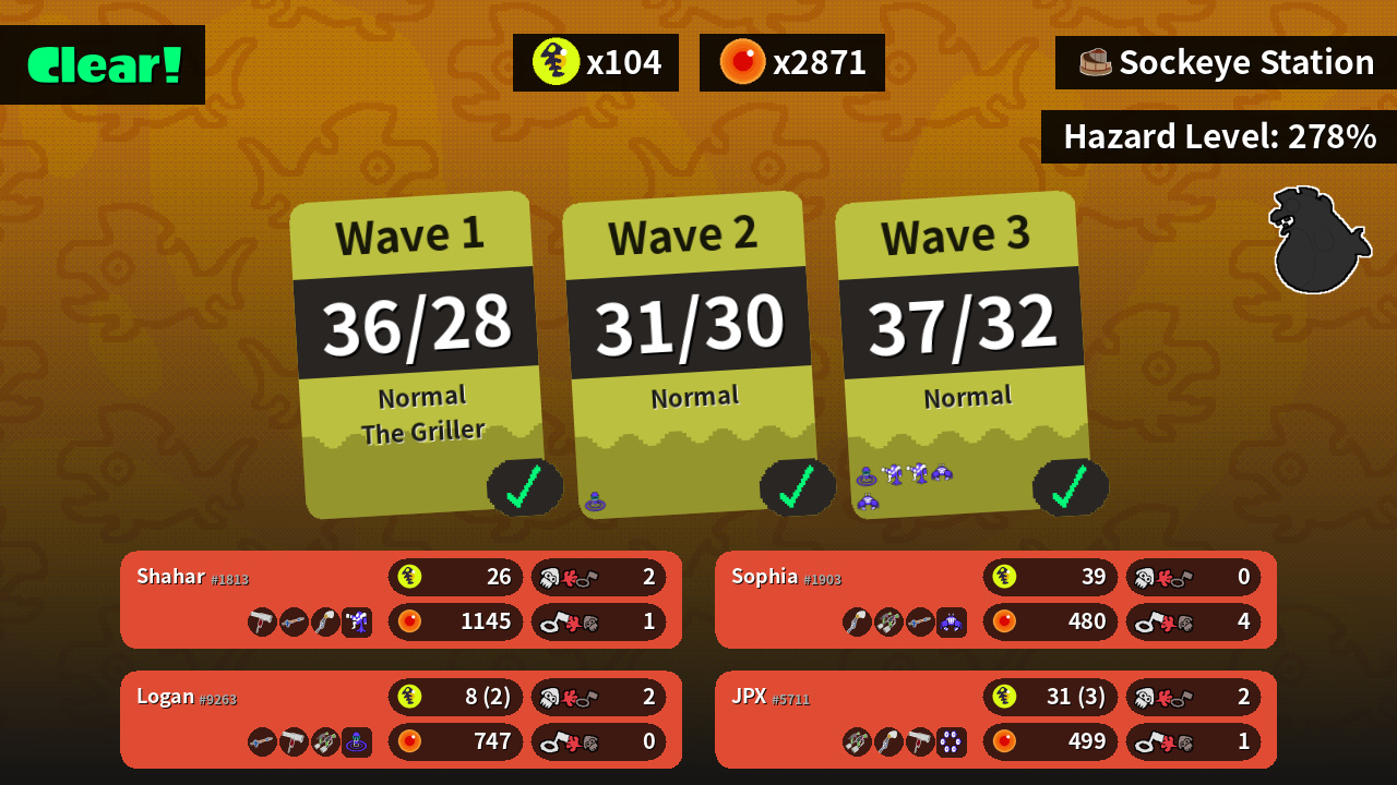 | Weapons | Flingza Roller Snipewriter 5H Inkbrush | Inkbrush Splat Dualies Snipewriter 5H | Splat Dualies Inkbrush Flingza Roller | Snipewriter 5H Flingza Roller Splat Dualies |