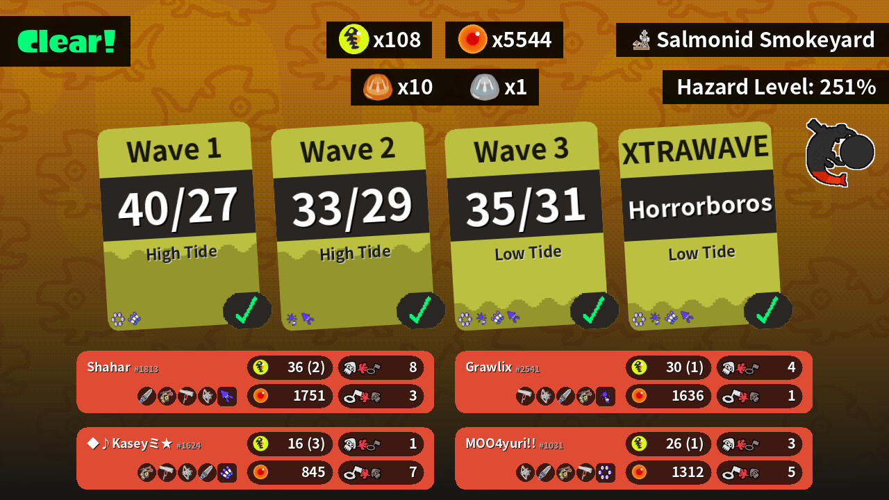 | Boss Salmonid | 25 | 32 | 21 | 10 |