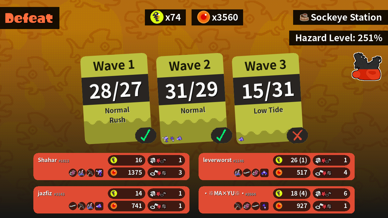 | Weapons | Dapple Dualies Slosher Undercover Brella | Slosher Classic Squiffer Dapple Dualies | Undercover Brella Dapple Dualies Classic Squiffer | Classic Squiffer Undercover Brella Slosher |