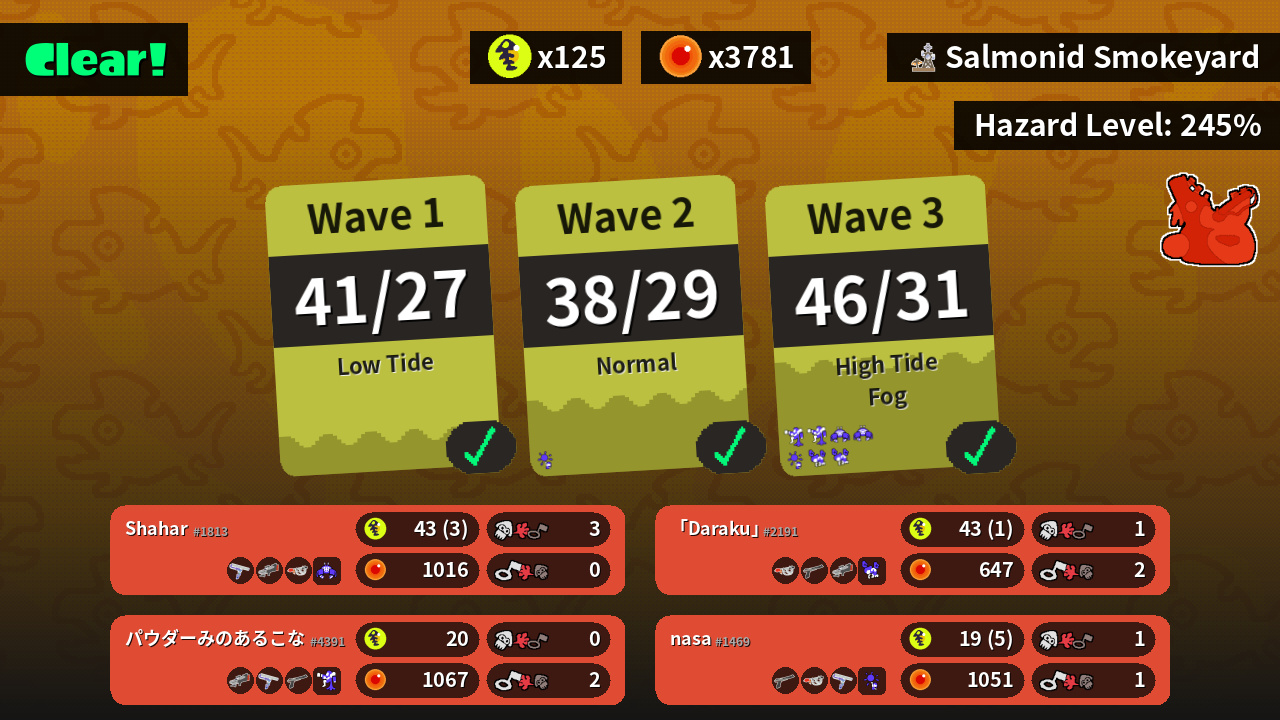 | Boss Salmonid | 15 | 9 | 20 | 23 |