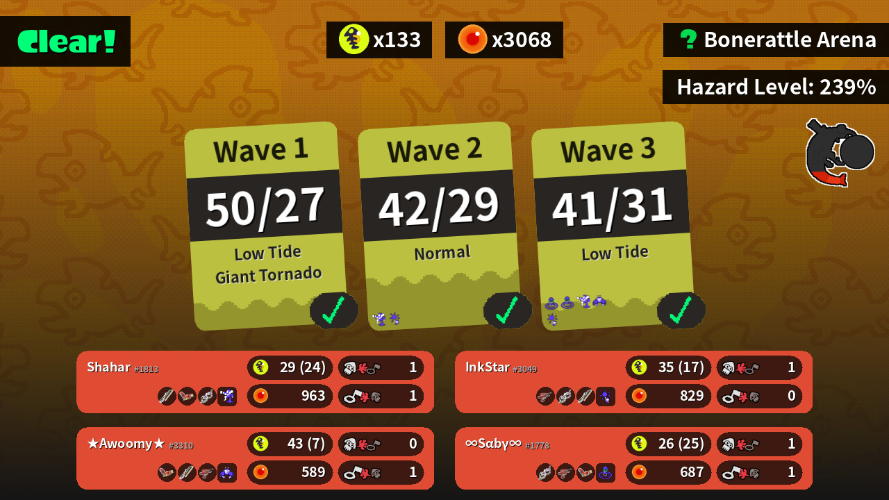 | Weapons | Splatana Wiper Hydra Splatling Dark Tetra Dualies | Hydra Splatling Splatana Wiper Dualie Squelchers | Dualie Squelchers Dark Tetra Dualies Splatana Wiper | Dark Tetra Dualies Dualie Squelchers Hydra Splatling |