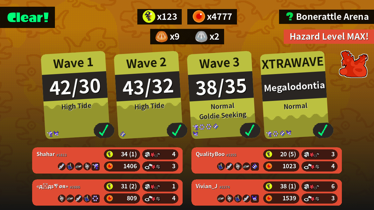 | Weapons | Mint Decavitator Tri-Slosher Ballpoint Splatling Tri-Stringer | Ballpoint Splatling Tri-Stringer Tri-Slosher Mint Decavitator | Tri-Stringer Ballpoint Splatling Mint Decavitator Tri-Slosher | Tri-Slosher Mint Decavitator Tri-Stringer Ballpoint Splatling |