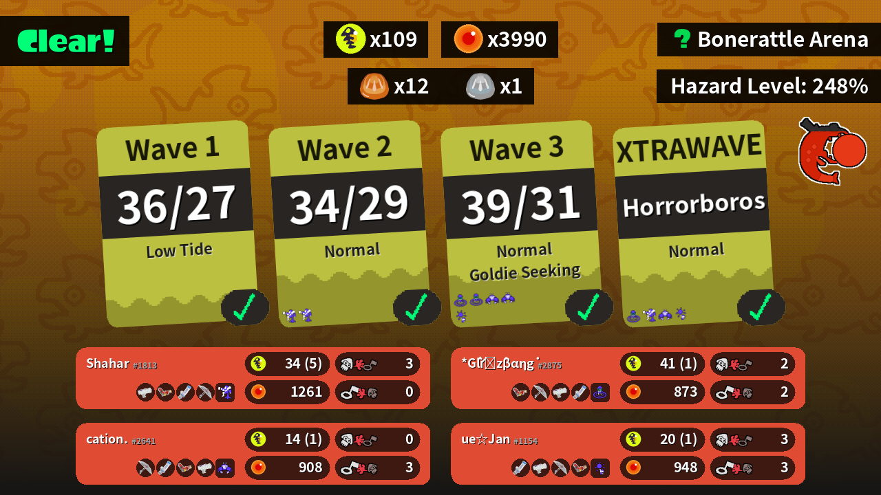 | Boss Salmonid | 20 | 12 | 13 | 17 |