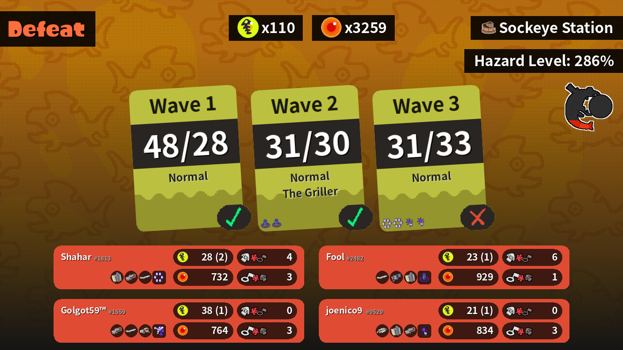 | Boss Salmonid | 17 | 8 | 15 | 14 |
