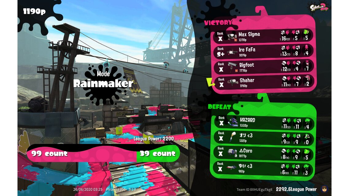 | Mode | Rainmaker - League Battle (Twin) | |||||||||||||||||||||||||||||||||||||