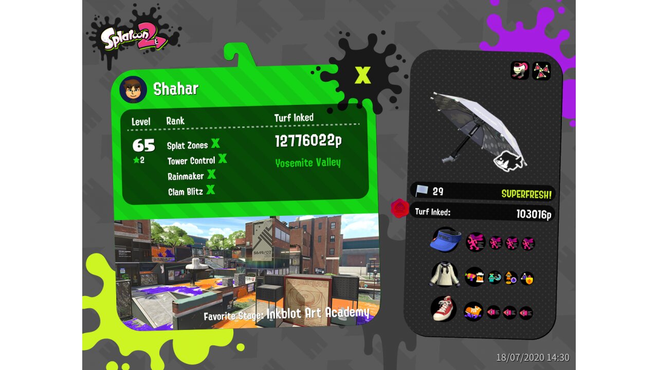 | Weapon | Sorella Brella ( Autobomb, Splat-Bomb Launcher) | ||||||||||||||||||||||||||||||||||||||||