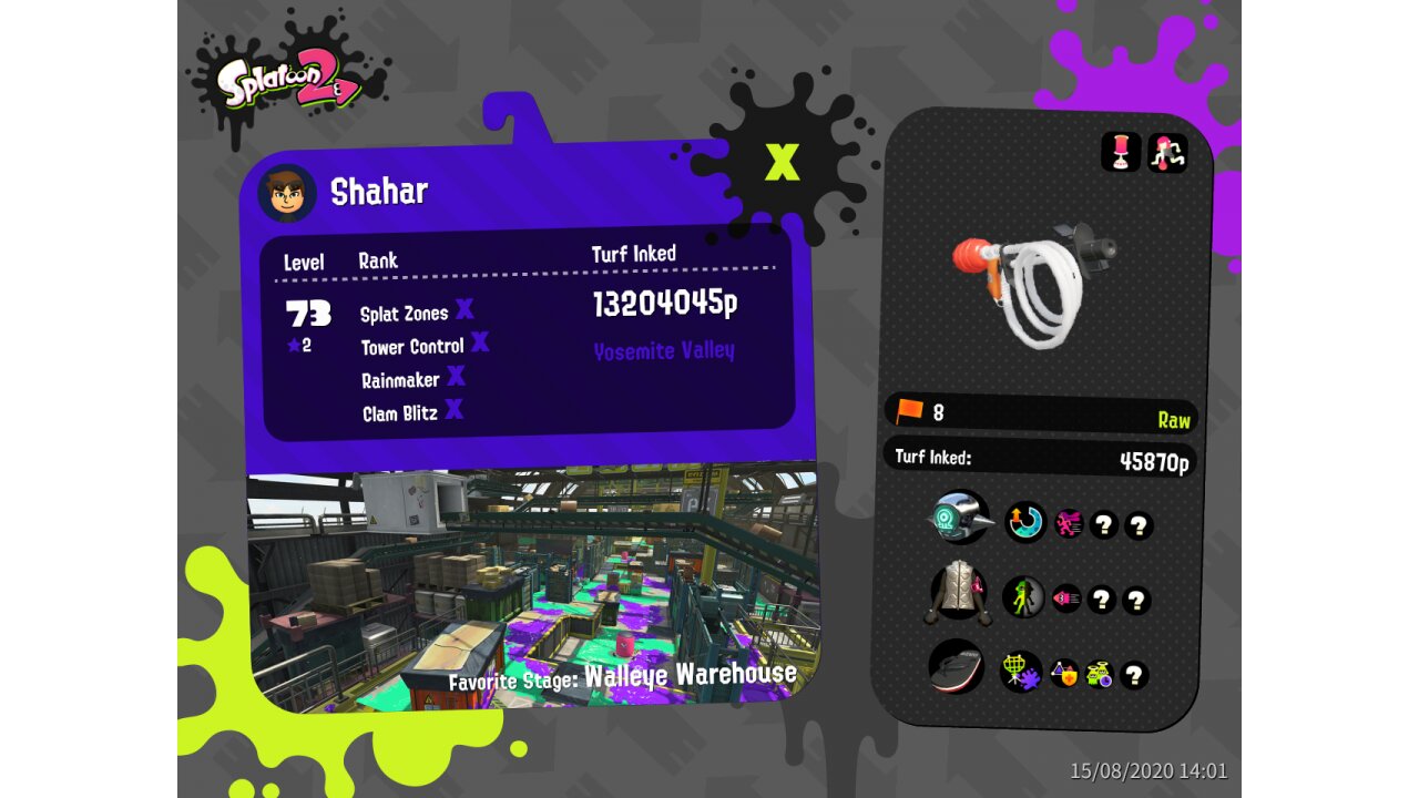 | SplatNet Battle # | 14,375 | ||||||||||||||||||||||||||||||||||||||||