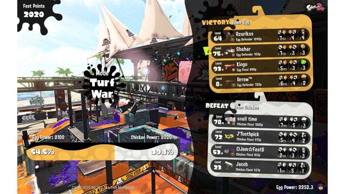 | Their team's splatfest power | 2,020 | |||||||||||||||||||||||||||||||