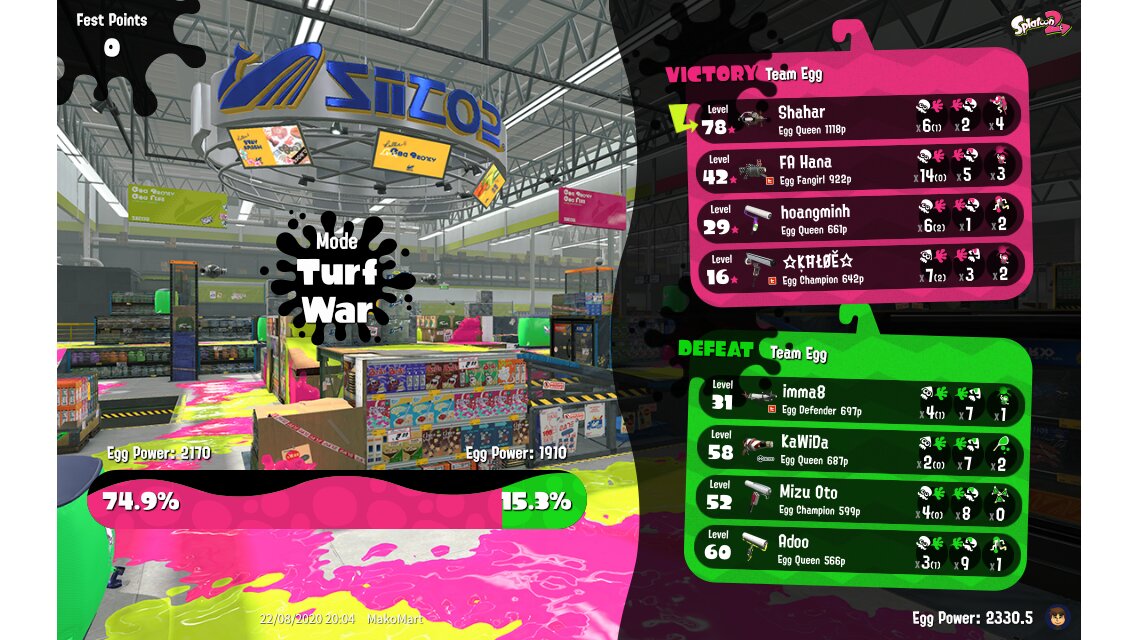 | Mode | Turf War - Splatfest (Pro) | ||||||||||||||||||||||||||||||||||||||||