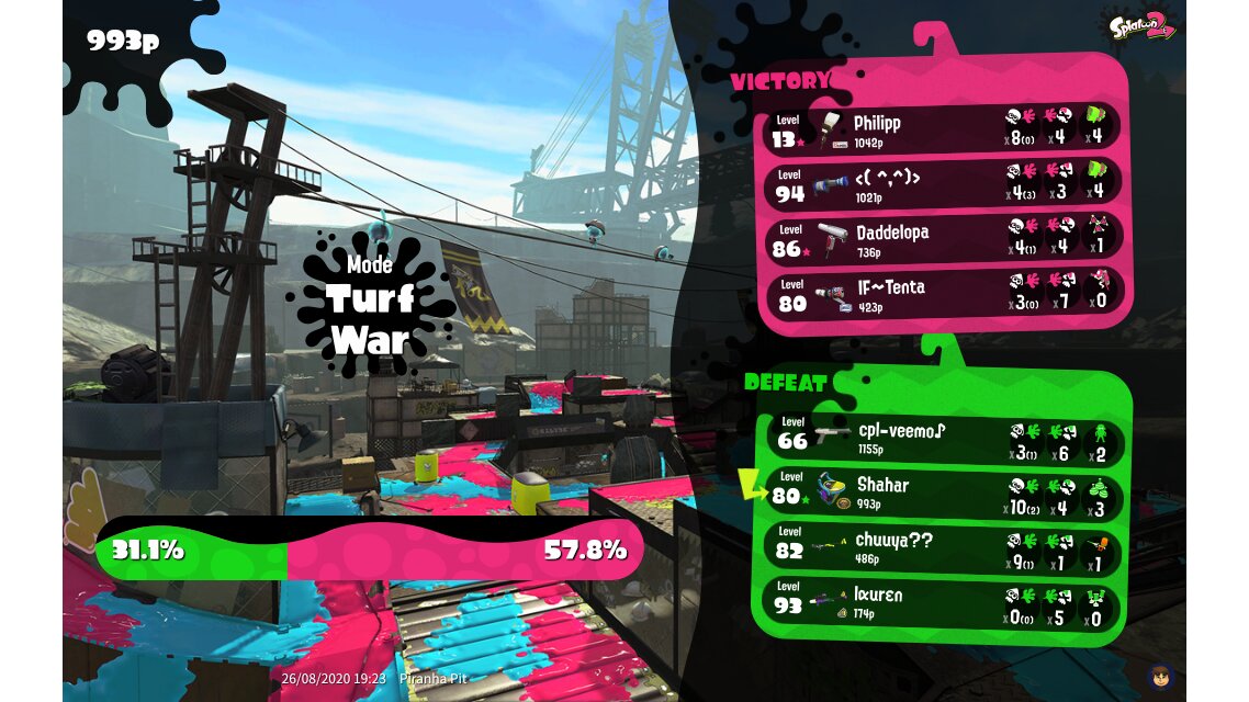 | SplatNet Battle # | 14,658 | |||||||||||||||||||||||||||||||||||||||||||