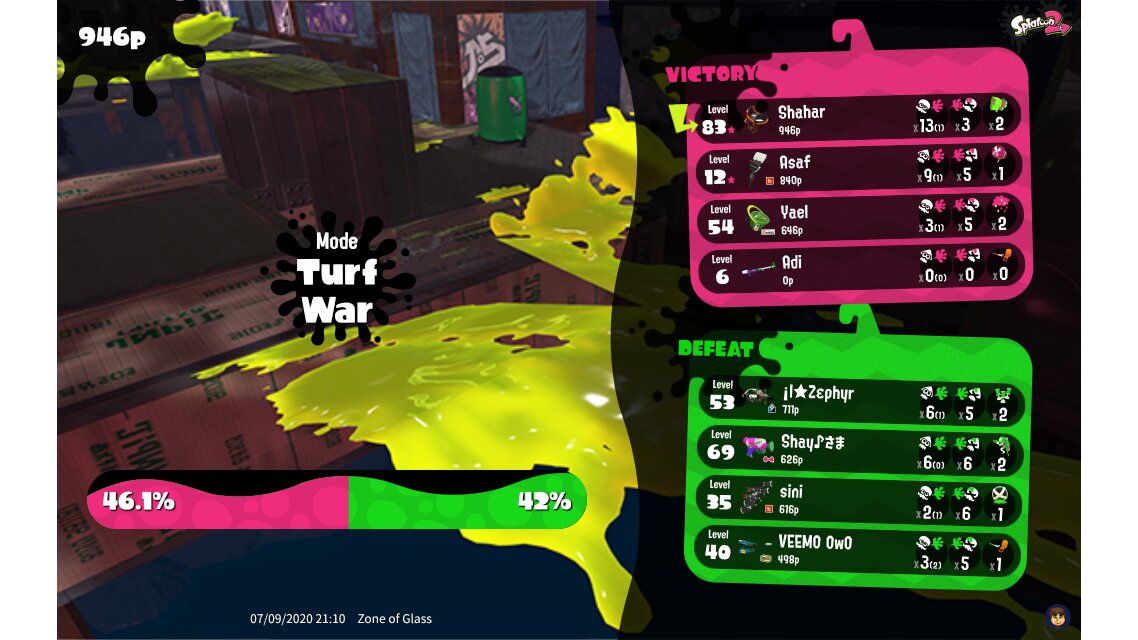 | Mode | Turf War - Private Battle | ||||||||||||||||||||||||||||||||||