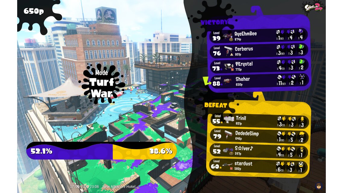 | Mode | Turf War - Regular Battle | ||||||||||||||||||||||||||||||||||