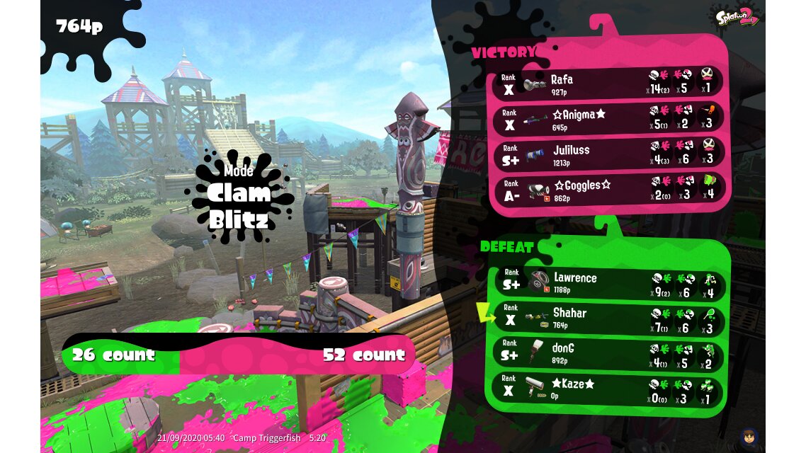 | Mode | Clam Blitz - Private Battle | ||||||||||||||||||||||||||||||||||