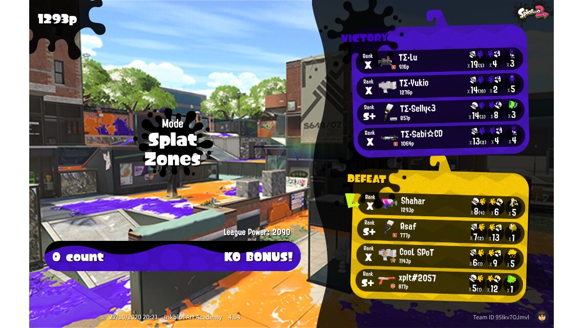 | Mode | Splat Zones - League Battle (Quad) | ||||||||||||||||||||||||||||||||||