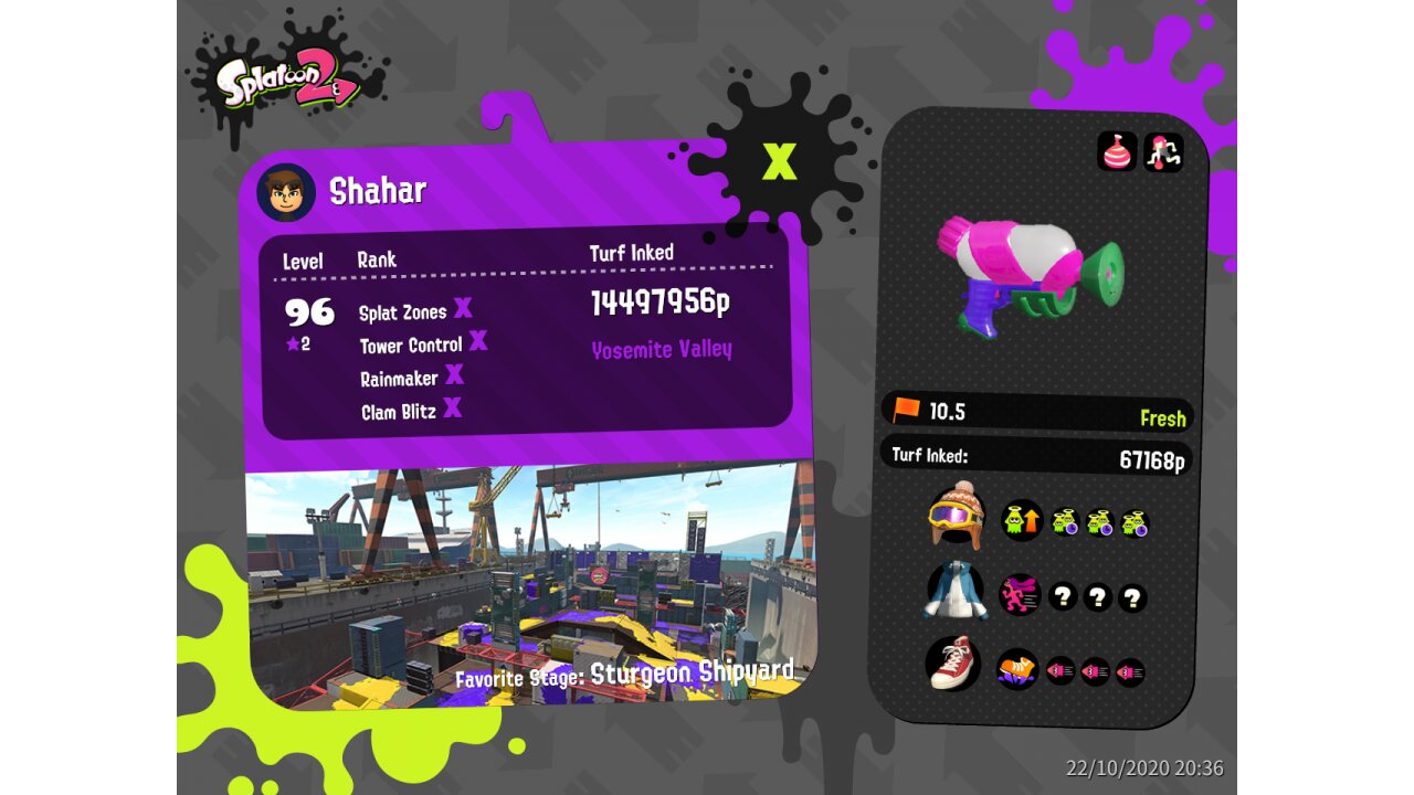 | Weapon | Splattershot ( Burst Bomb, Splashdown) | ||||||||||||||||||||||||||||||||||