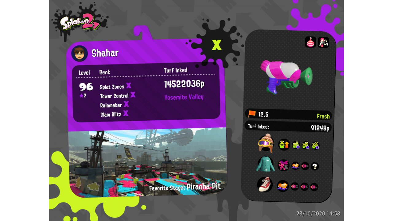 | Weapon | Splattershot ( Burst Bomb, Splashdown) | ||||||||||||||||||||||||||||||||||