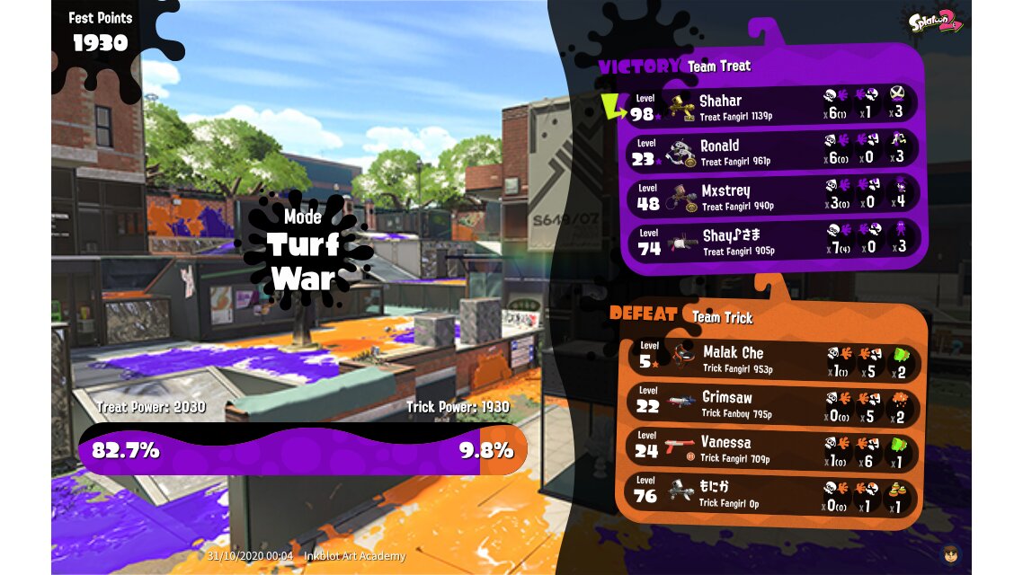 | Splatfest Title | Treat Fangirl 0 → Treat Fangirl 90 | ||||||||||||||||||||||||||||