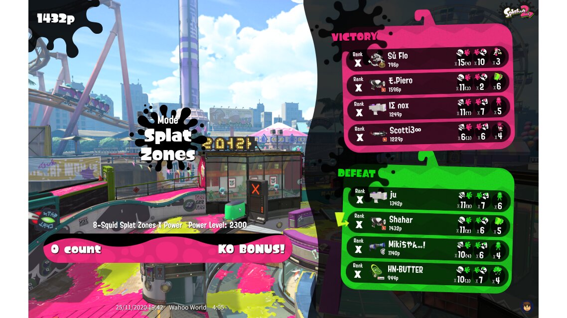 | Mode | Splat Zones - Ranked Battle | ||||||||||||||||||||||||||||||||||