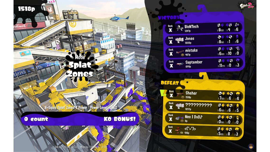 | Mode | Splat Zones - Ranked Battle | ||||||||||||||||||||||||||||||||||