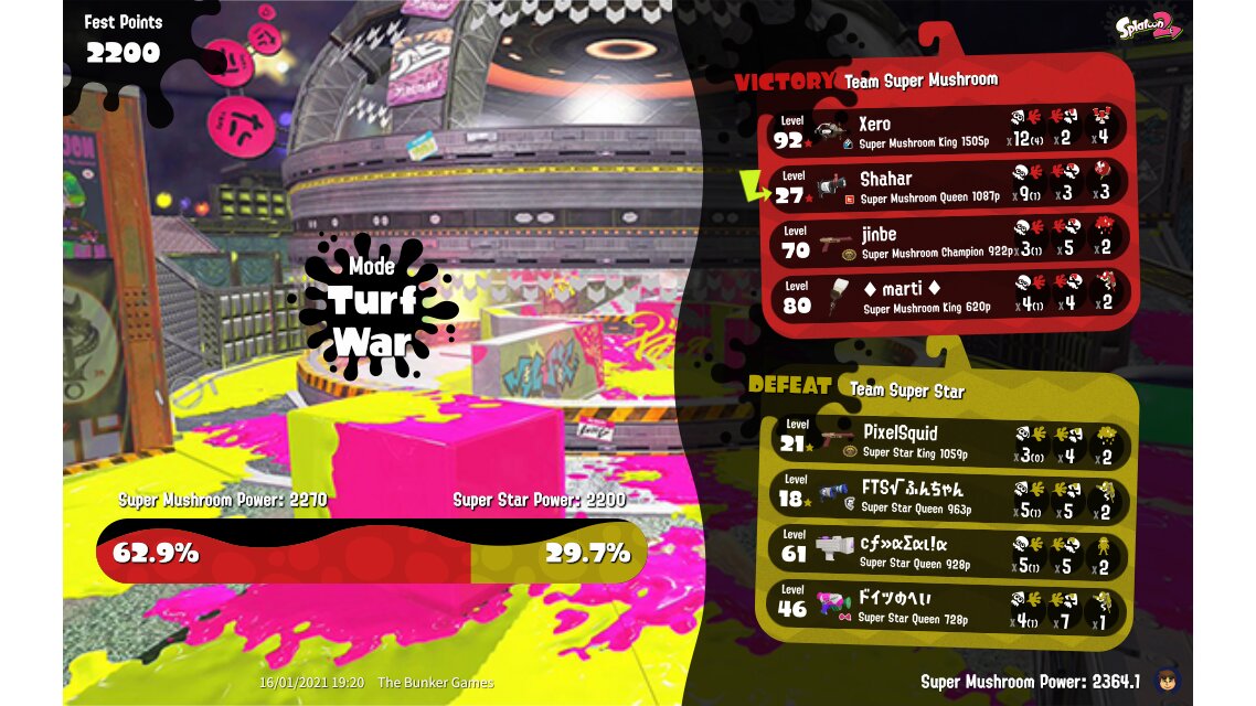 | Splatfest Title | Super Mushroom Queen → Super Mushroom Queen | |||||||||||||||||||||||||||||||