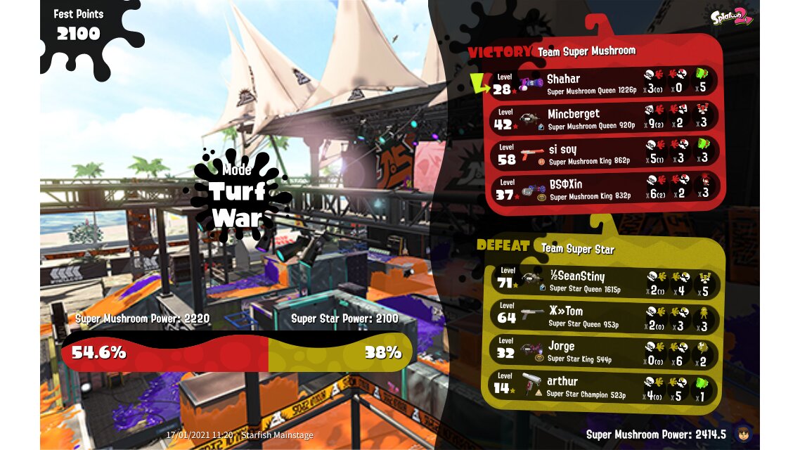 | Splatfest Title | Super Mushroom Queen → Super Mushroom Queen | ||||||||||||||||||||||||||||||||||