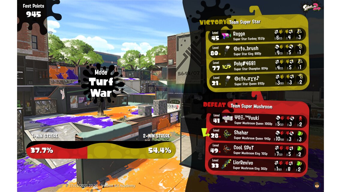 | Mode | Turf War - Splatfest (Normal) | ||||||||||||||||||||||||||||||||||