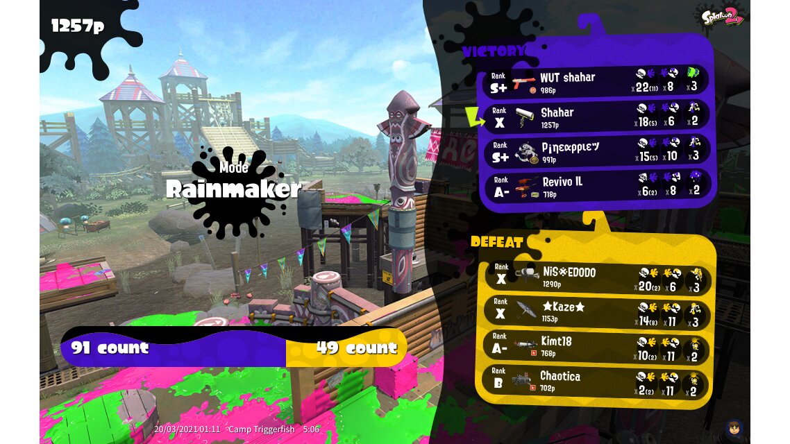 | Name | Weapon | Level | Rank | Inked | k+a/sp | k/d |