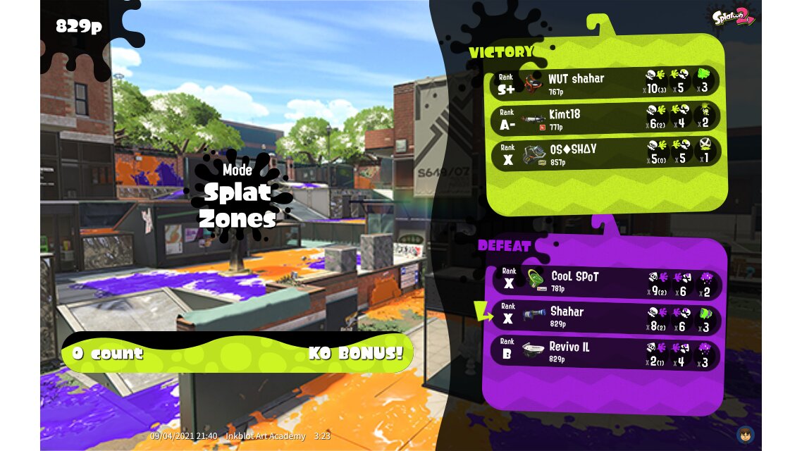 | Mode | Splat Zones - Private Battle | ||||||||||||||||||||||||||||