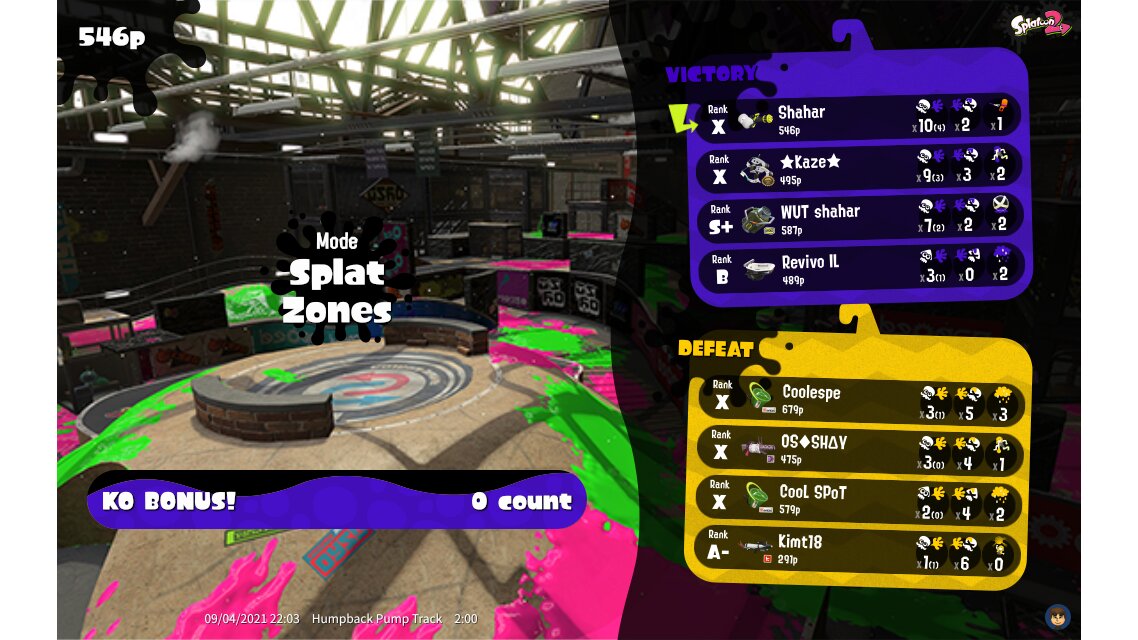 | Mode | Splat Zones - Private Battle | ||||||||||||||||||||||||||||