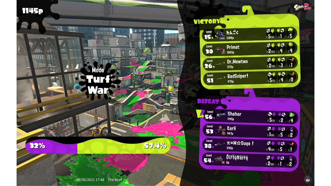 | Mode | Turf War - Regular Battle | ||||||||||||||||||||||||||||