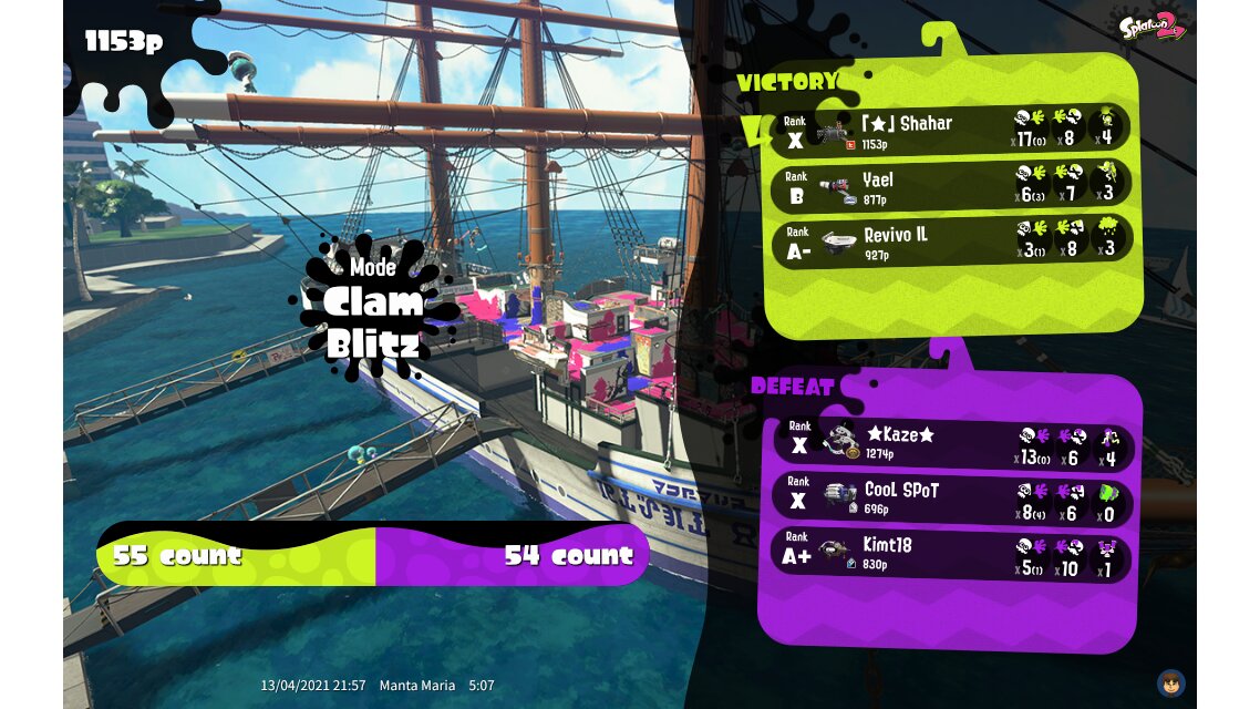 | Mode | Clam Blitz - Private Battle | ||||||||||||||||||||||||||||||||||||||||